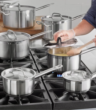 Its tri-ply construction includes a 21CT Stainless Steel body for food safety, durability, and easy maintenance; an aluminum core for even heat distribution and eliminating hotspots; and a magnetic stainless steel bottom that is compatible with all cooktops (electric, ceramic, gas, and induction).