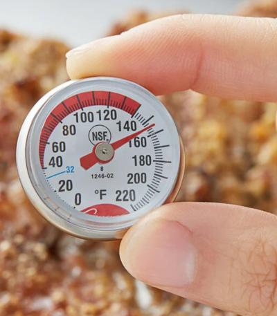 RM93.75The Bi-Metal Pocket Test features a red protective sheath with anti-microbial additive, adjustment tool and pocket clip. NSF certified. This particular thermometer has a temperature range of 0 to 220 degrees Fahrenheit and is accurate to +/- 2 degrees Fahrenheit. The HACCP danger zone is even highlighted in red on the dial, showing unsafe food temperatures so that proper action can be taken immediately. The freezing point is also highlighted, though in blue. For overall ease of use, the thermometer’s dial is 1″ in diameter and features a magnifying lens. Plus, to ensure consistent accuracy, use the small adjuster on the protective cover to recalibrate the thermometer.