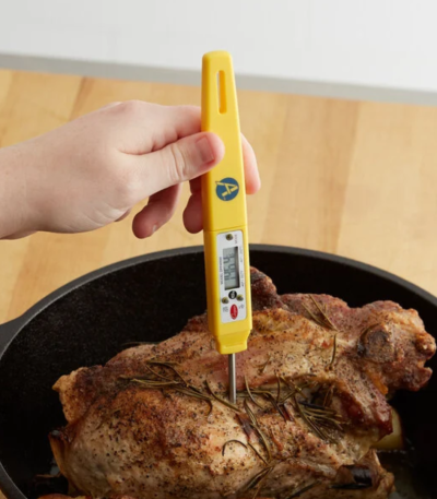 This thermometer is accurate within 2°F, features an easy-to-read digital display, and is waterproof with an antimicrobial coating to prevent bacterial growth.