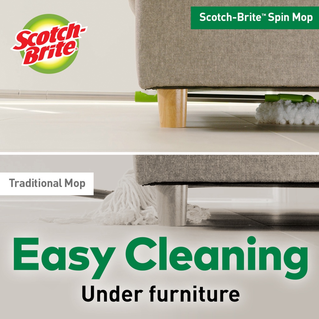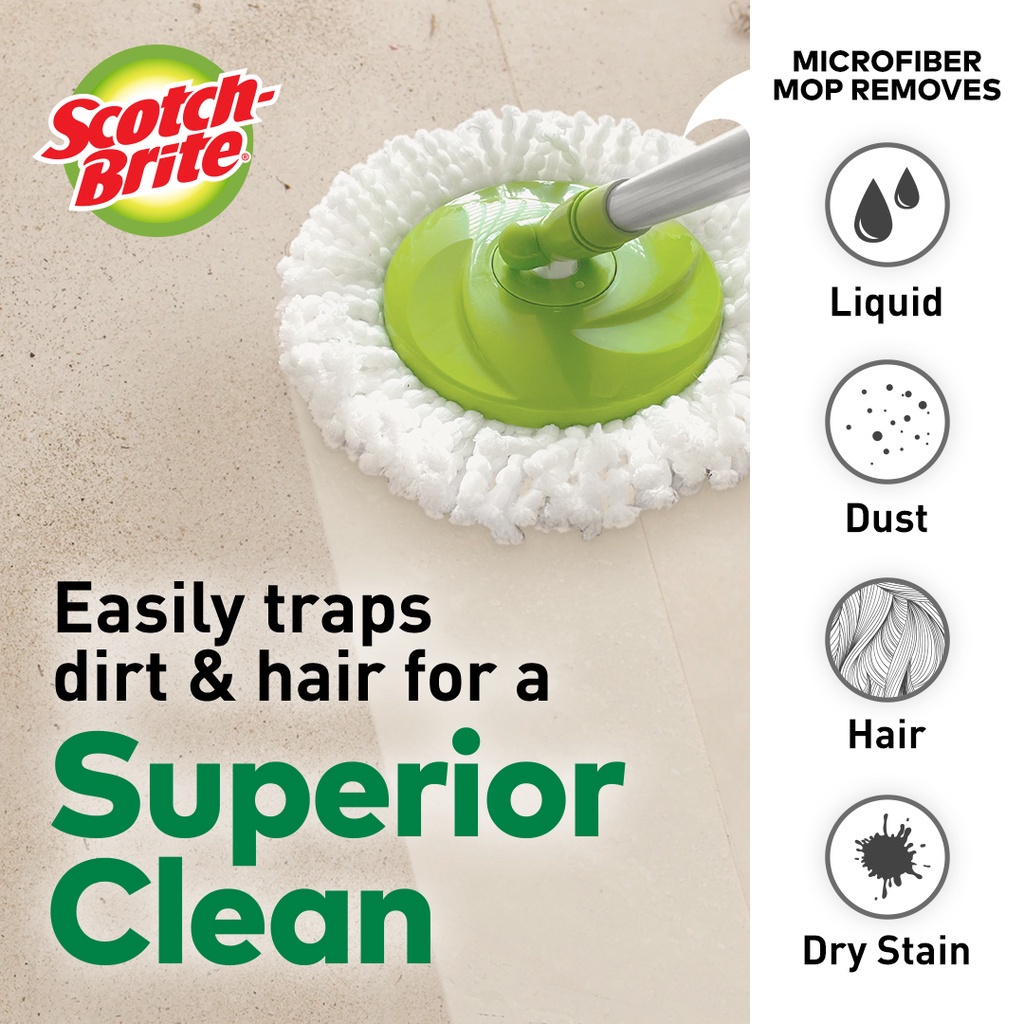 Scotch-Brite® Spin Mop ideal for daily floor cleaning. This new technology mop is a good quality product and is very easy to attach and dismantle.