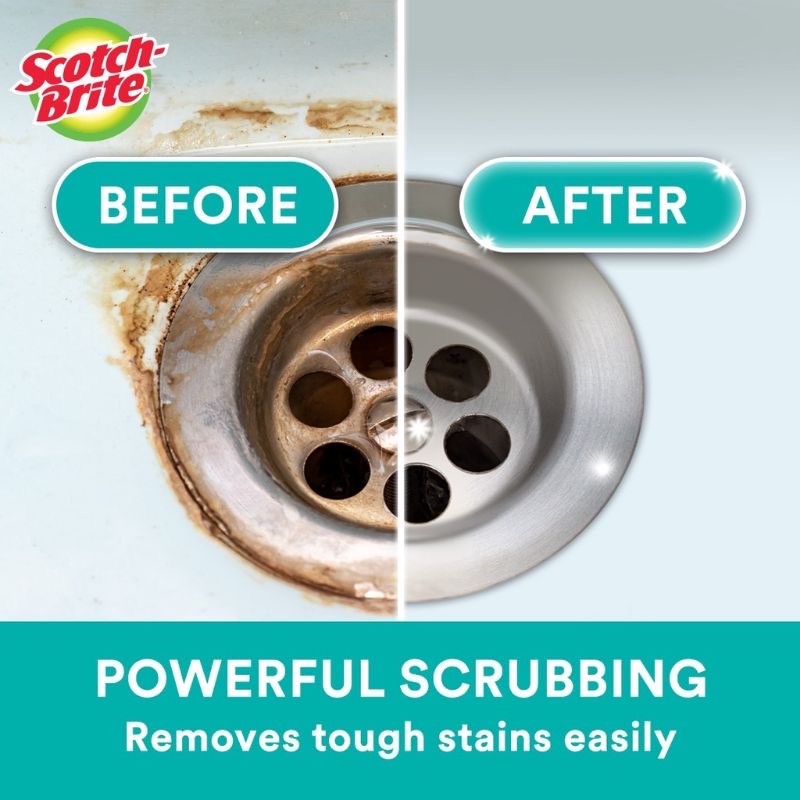 If you’re not a fan of getting your hands into the mess of pots and pans then try Scotch-Brite™ Handy Scrubber with Brush Head.
