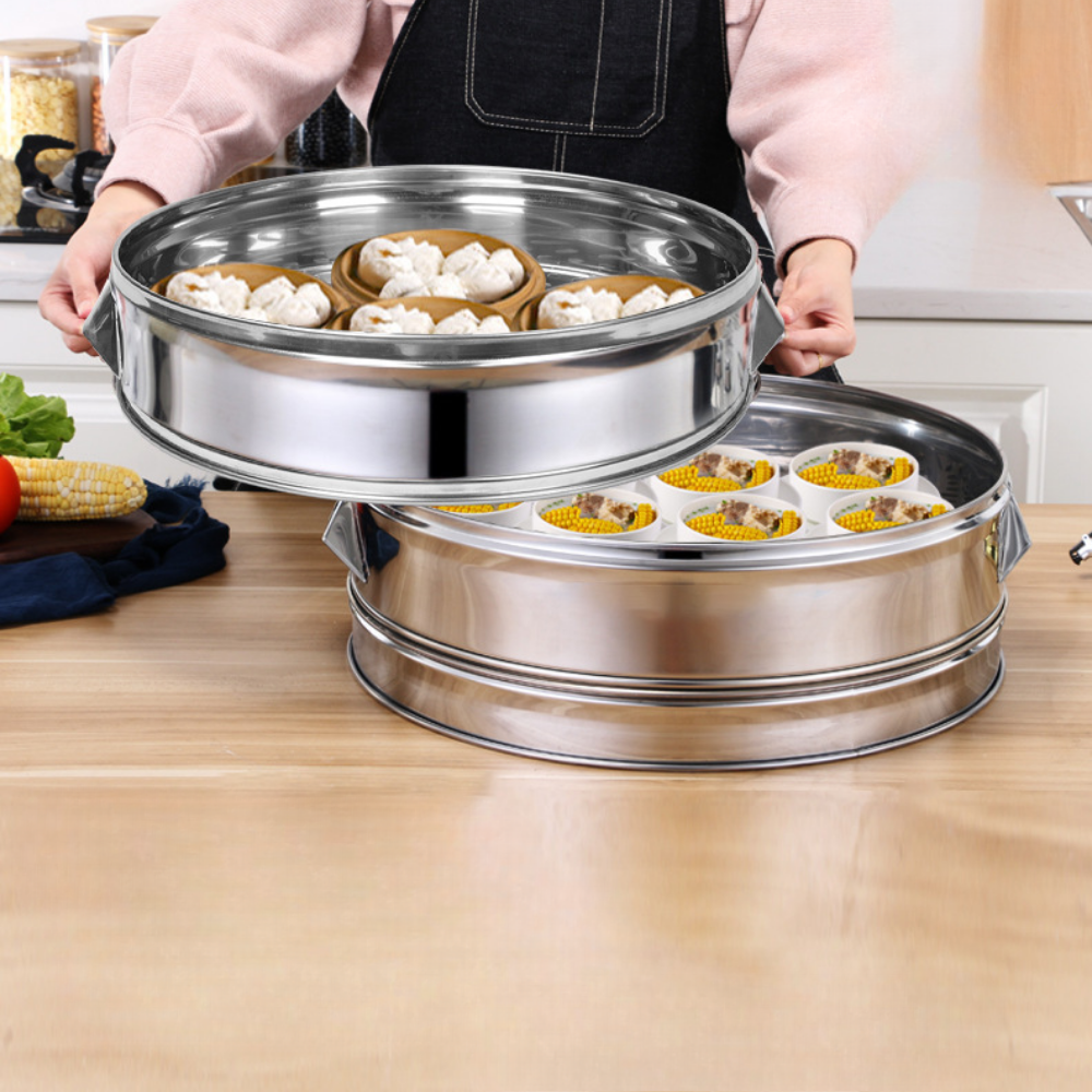 Crafted from durable, food-grade stainless steel, this commercial-grade steamer set is designed for high-volume cooking, perfect for restaurants, catering businesses, or large family gatherings. Each set includes multiple stackable tiers, allowing for simultaneous steaming of various dishes, from dim sum and vegetables to seafood and more. The sturdy construction ensures even heat distribution for perfectly cooked results every time, while the easy-to-clean surface makes maintenance a breeze. This versatile and robust steamer is an essential addition to any professional kitchen seeking efficiency and quality in their culinary operations.