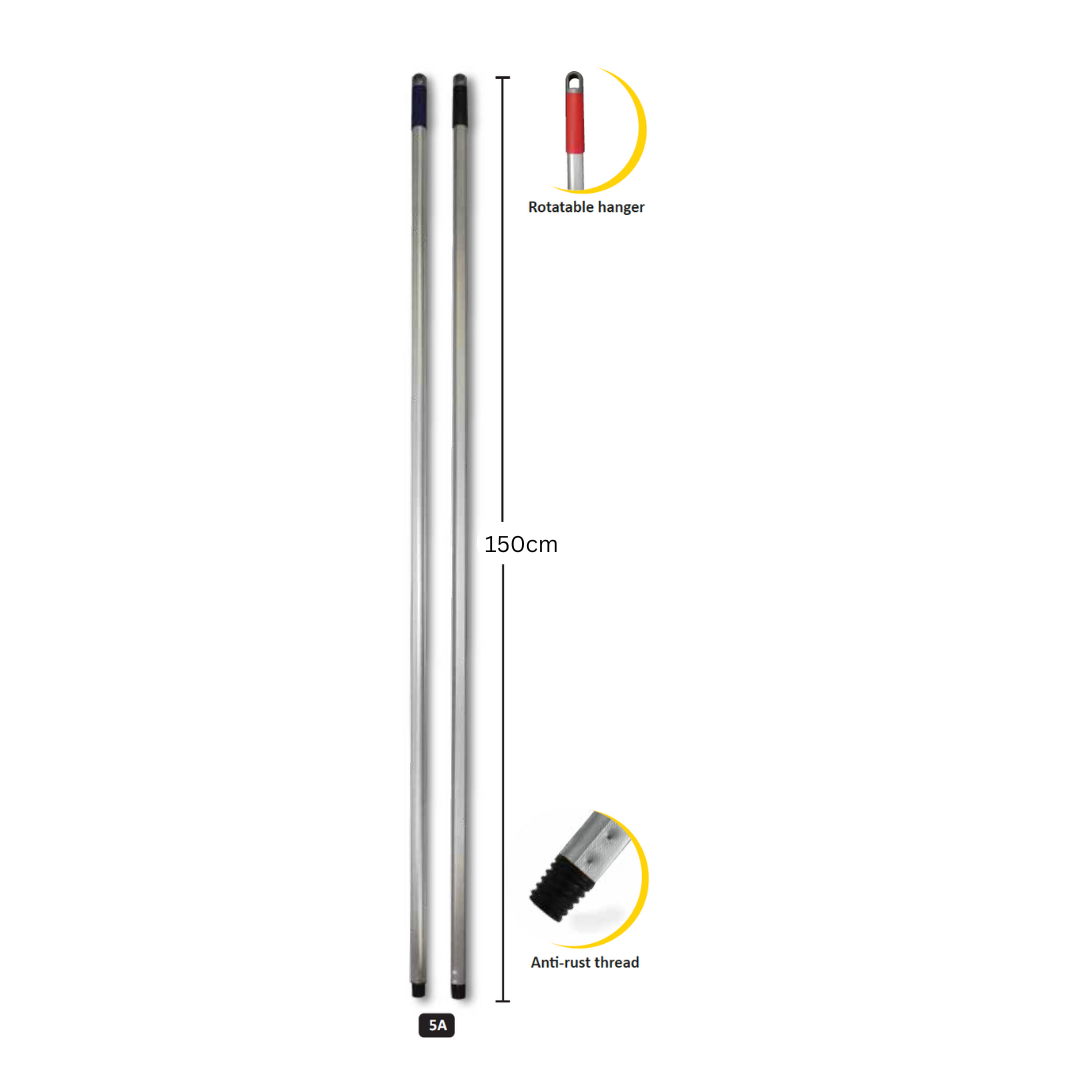 This Aluminum Handle is lightweight and durable, making it ideal for use with both brooms and mops. It features an anti-rust threaded tip for secure attachment to cleaning tools, ensuring longevity and resistance to corrosion. The handle is also equipped with a rotatable hanger, which allows for convenient storage by hanging it on hooks or in closets.