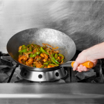 The design of the shanghainese/chinese / asian wok pan is perfect for cooking a variety of dishes. Unlike a skillet, which cooks from the bottom of the pan only, the wok features high steep sides that cook foods from all sides. As food is tossed around the pan, it is cooked extremely quickly and thoroughly due to the even heat distribution. Designed to be rugged and practically indestructible, this wok is made from cold-forged carbon steel, giving it the superior durability to stand up to hard use in a commercial kitchen.