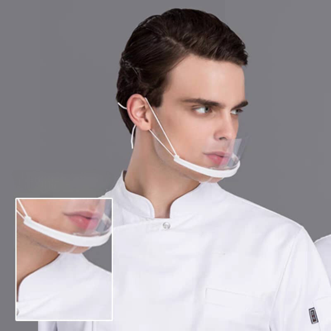 This transparent, anti-fog face shield is designed for optimal comfort and practicality, perfect for use in restaurants, cafes, and food preparation areas. Its ergonomic design ensures a snug fit with a comfortable strap, while the wide shield provides excellent coverage without obstructing your vision or communication. The anti-fog feature keeps the shield clear, even during extended use, and the 180° rotation allows for easy adjustment as needed. Lightweight and durable, this face shield is an essential accessory for maintaining hygiene and professionalism in any culinary or service setting.