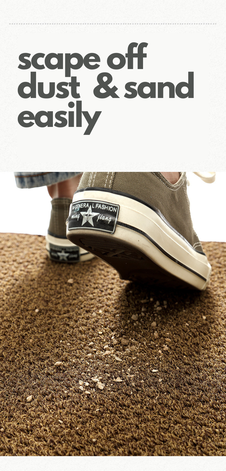 • Efficient Dirt and Sand Scraping: The unique texture effectively scrapes off mud and traps sand, keeping your indoor spaces clean.