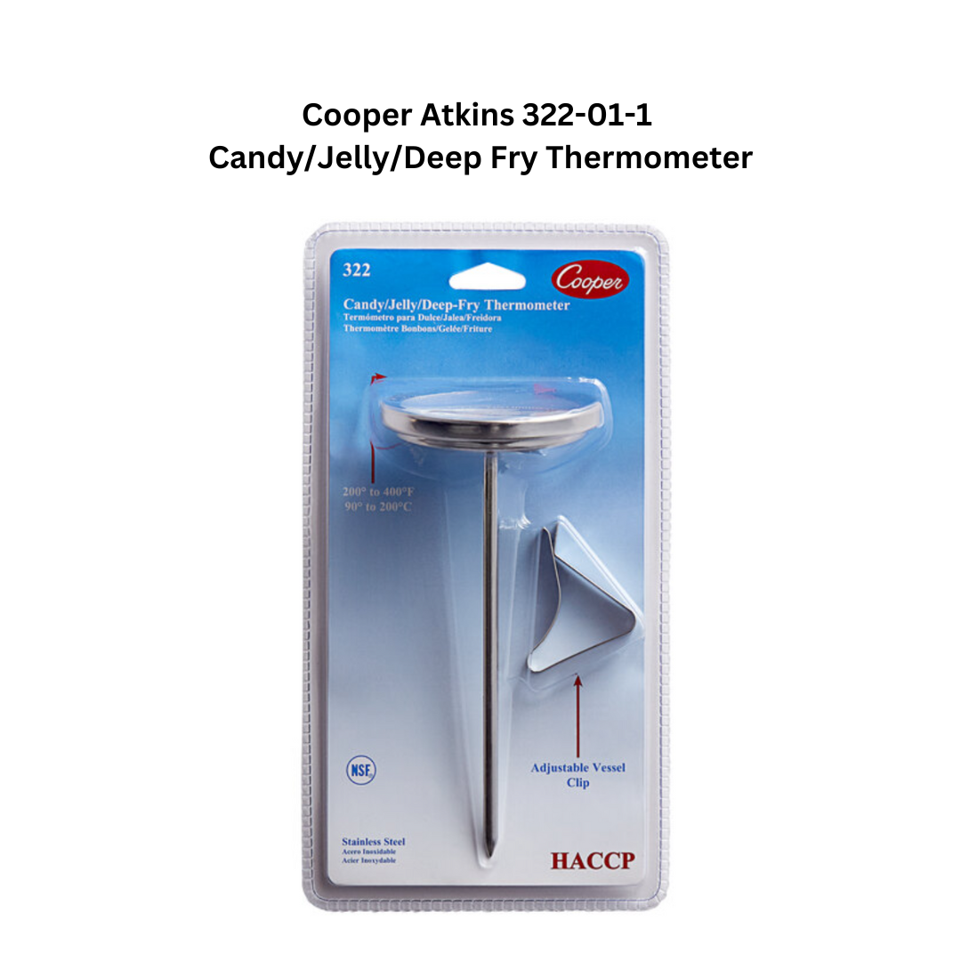 The thermometer provides precise temperature measurements for candy-making, frying, and more, with a range of 200 to 400°F (also in Celsius) and accuracy within +/- 5°F. Its 5 1/2″ stainless steel stem ensures accurate readings, while the 2 1/2″ dial with a sliding indicator and zoned markings makes it easy to identify ideal temperatures for specific tasks. The thermometer includes a vessel clip to secure it to pots or pans and features a durable glass lens for clear visibility and easy cleaning, making it a reliable tool for candy, jelly, jam, and fryer oil preparation.