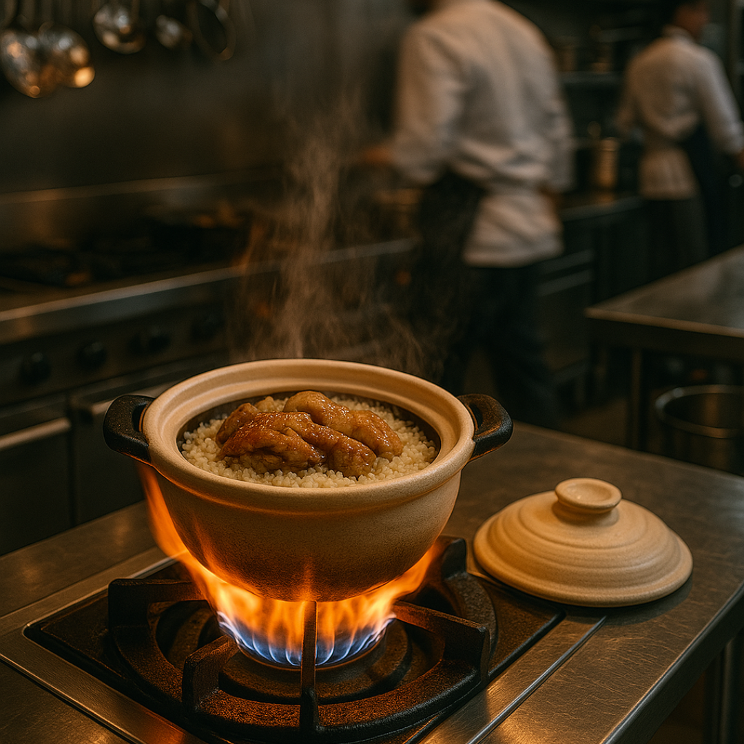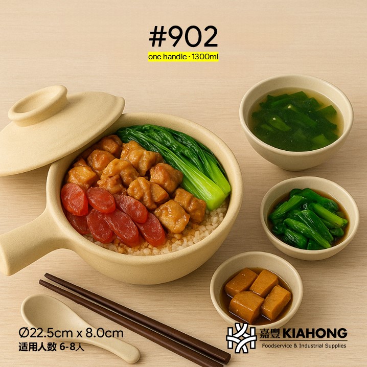 The pot features a sturdy build with side handles for easy lifting and a matching lid to trap heat and moisture, making it ideal for soups, stews, claypot rice, and more.
