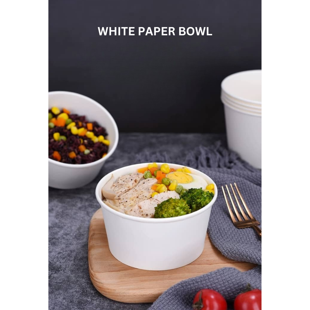 Disposable PAPER BOWL (WHITE) with Optional LID