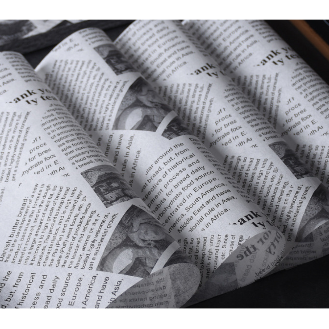 With excellent grease-absorbing properties, it helps keep your food less oily and more enjoyable. Safe for direct contact with food, this paper ensures a hygienic and convenient way to prepare and serve your dishes, and also great culinary presentation with the retro newspaper-design.