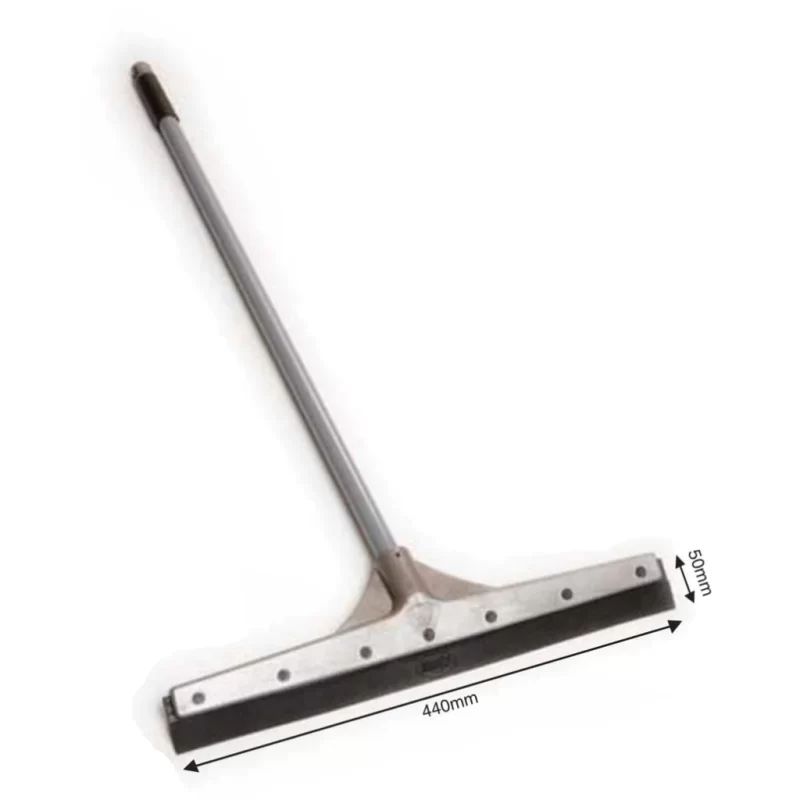 This lightweight floor wiper is designed for efficient cleaning on smooth surfaces such as floors and tiles. It features a durable 18inch wide blade that effectively wipes away water, dust, and debris, ensuring a streak-free finish. The wiper comes with a sturdy handle for comfortable use and is available in multiple colors, including green, blue, red, and black.