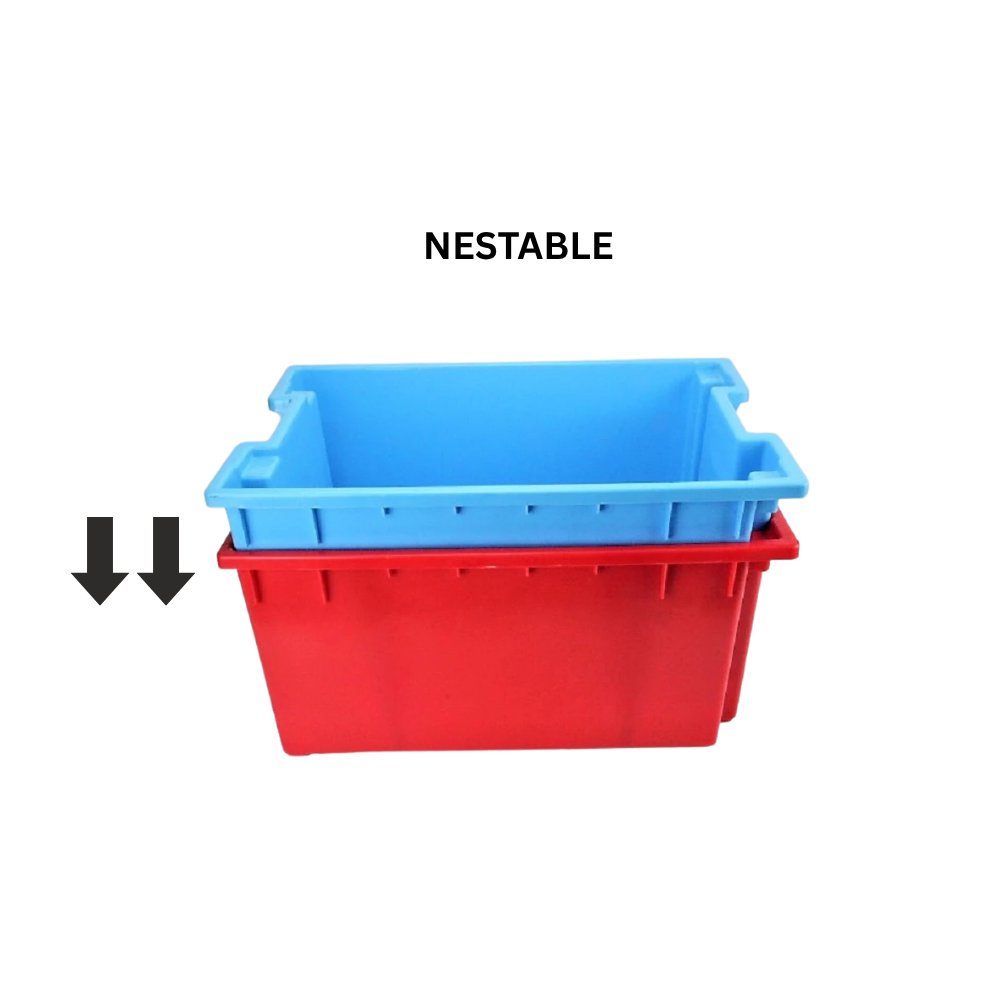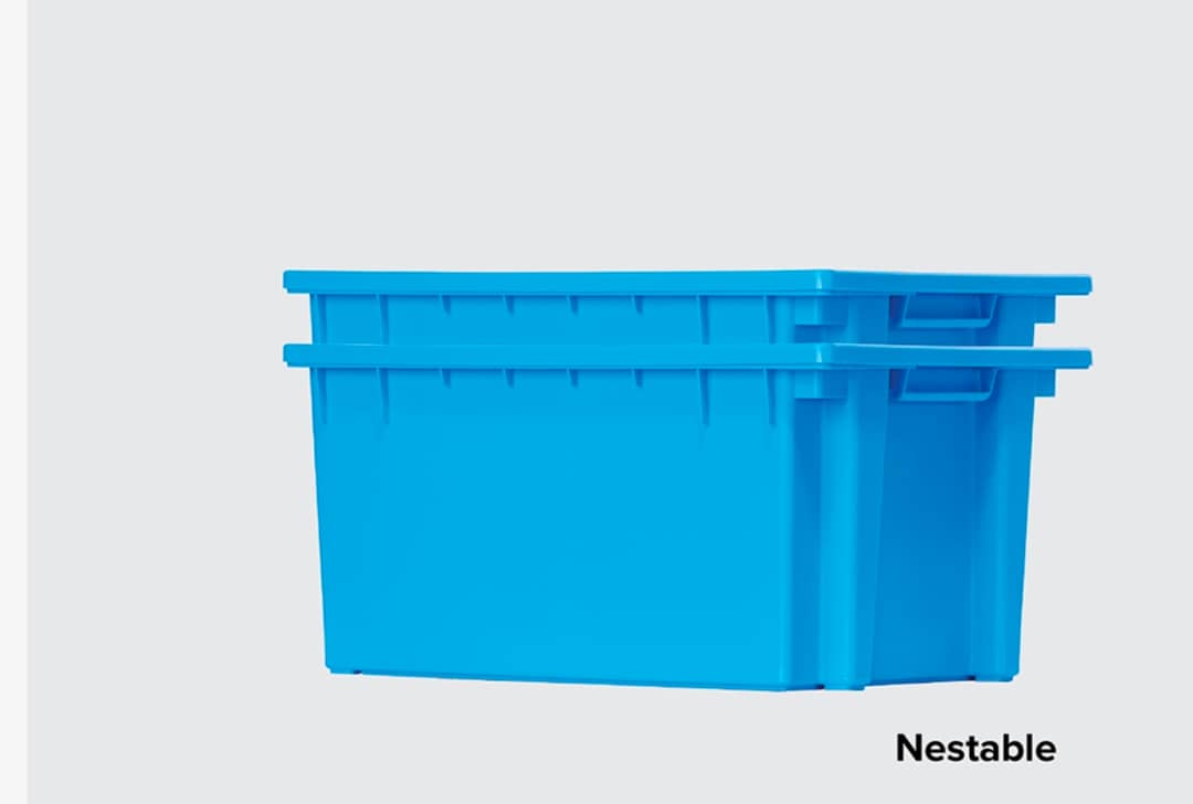 Large 180º stacking and nesting heavy duty plastic storage containers. These cleverly designed plastic containers either nest or stack upon one another when turned/rotated by 180º (degrees). Engineered for a diverse range of industrial, commercial, and domestic applications, these heavy-duty plastic containers are the ideal solution for all your storage, warehousing, and logistics needs.