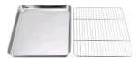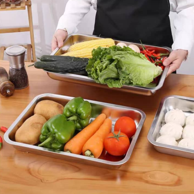 This multi-purpose rectangle tray with pairing drainer rack is a versatile and practical addition to any kitchen or bakery to separate grease/oil , or efficiently draining and drying dishes, utensils, and glassware. The tray features a sleek, polished stainless steel finish that is not only durable and resistant to rust and corrosion but also easy to clean and maintain.