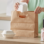 The bag’s large, flat bottom creates a sturdy base for platters and clam shell packaging. You can feel confident that your takeout and delivery orders will remain secure and upright in this bag!