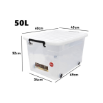 This versatile plastic storage box with wheels, designed for effortless organization and mobility. Crafted from durable see-through plastic, this storage solution allows you to easily identify and access your items. The addition of smooth-rolling wheels makes it simple to move the box around.