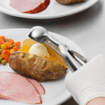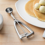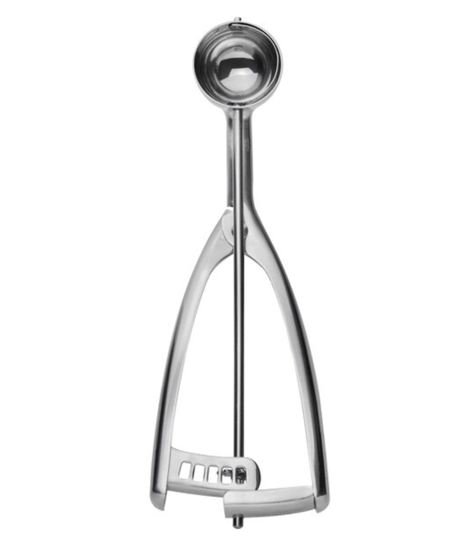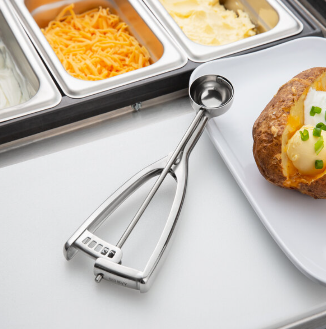 Make serving perfect portions easy and efficient with this food / ice-cream scoop. This ergonomic disher features an all-stainless steel construction that is attractive and built to last in a commercial setting. Its universal styling makes it perfect for right- or left-handed use and offers a comfortable grip, while also ensuring ease of use for fast, consistent portioning.