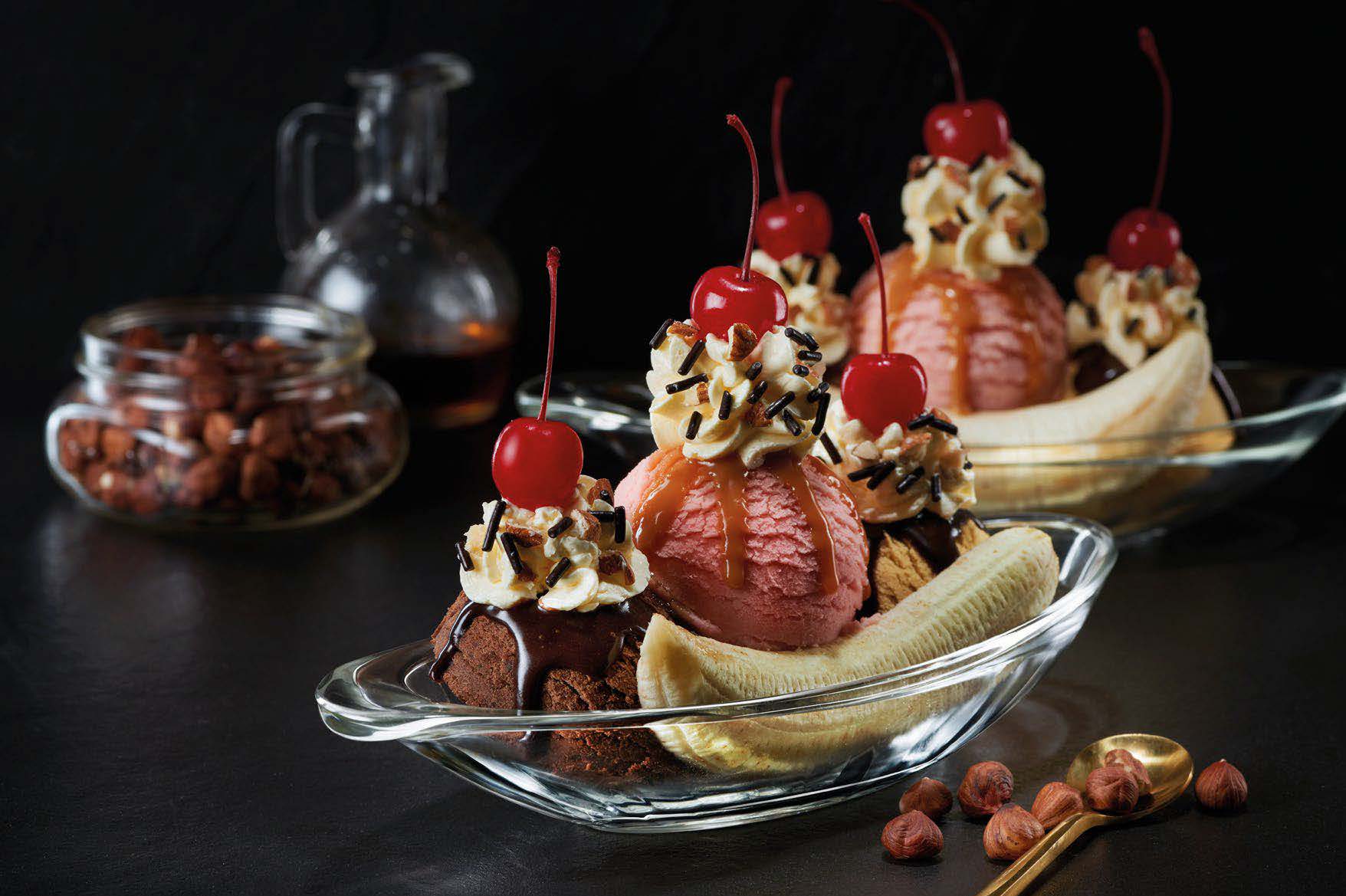 The newly designed plate for your favorite Banana Split adds some playfulness for an ice cream combo.