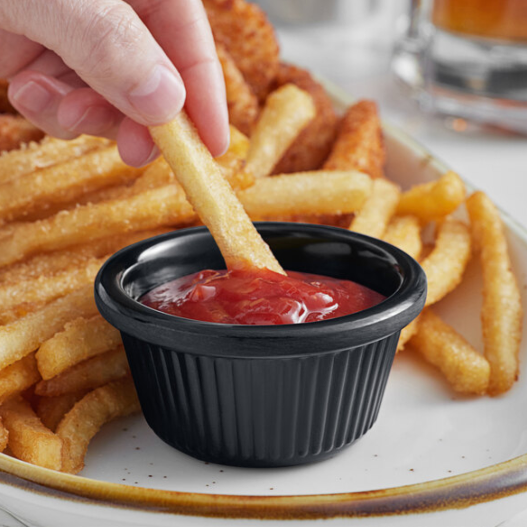 A versatile and durable container designed for a variety of culinary applications, including serving individual portions of sauces, condiments, dips, or desserts.