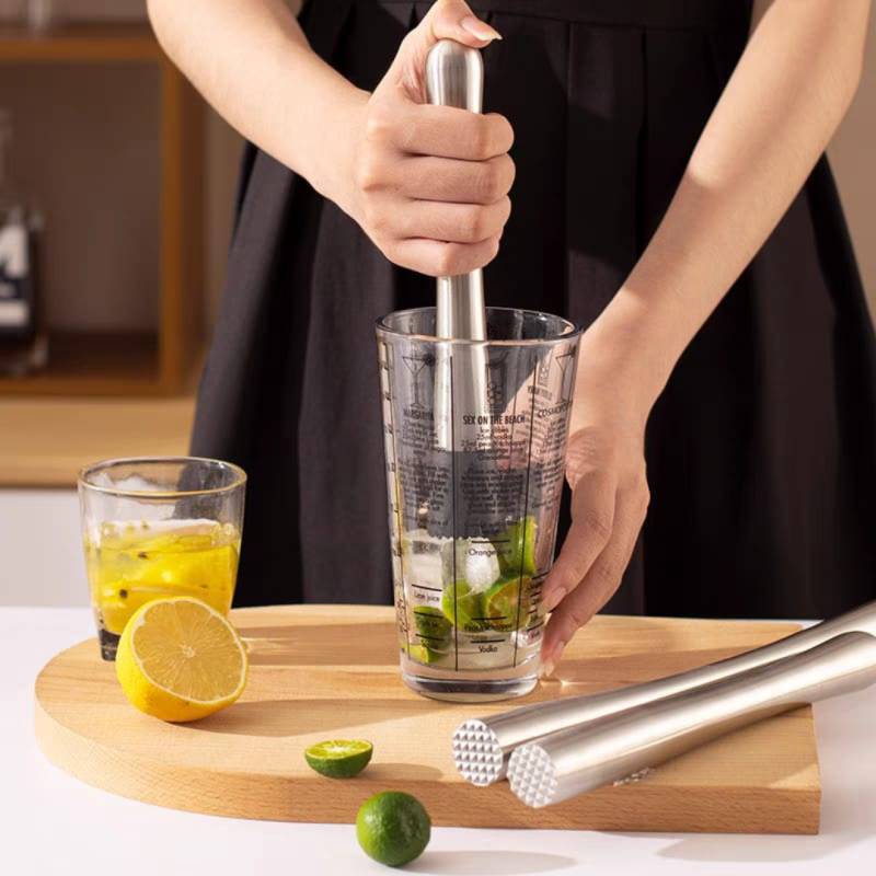This heavyweight two-piece Boston Shaker has a great capacity, making it the ideal size for shaking two cocktails at once or creating a cocktail with egg-whites, like a Whiskey Sour. (More space in the shaker tin allows for more air, creating fluffier egg white foam.)
