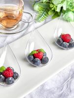 Elevate your event with our elegant PS Containers/ Spoon-shaped Dishes, perfect for serving a variety of delectable desserts such as canape, mousse, tiramisu, jelly and more. These stylish and versatile cups are ideal for weddings, seminars, parties, food sampling, beverage testing, and other special occasions.