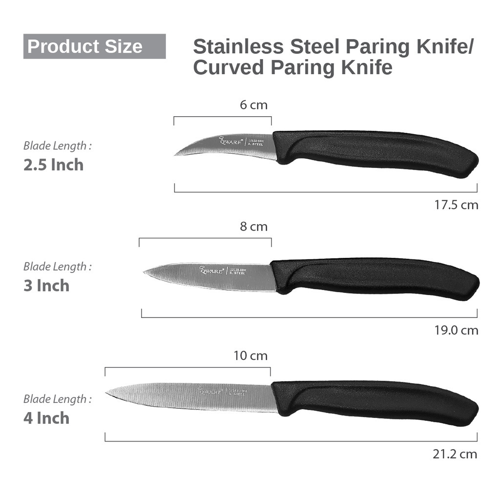 Qware® Stainless Steel Paring Knife is incredibly well made for every chef’s precision cutting tasks in the kitchen. With this lightweight and small sized knife on hand, you will get impressed with how excel it works in dealing with the deveining, slicing, and garnishing tasks! Let’s impress your guests by turning your fresh fruits and vegetables cuts into nutritious dishes that are aesthetically pleasing with our paring knife!