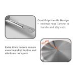 2. Food Grade 21CT Stainless Steel Body Food Grade & nickel free body to prevent food react chemically with the cookware. Achieve up to 90% of 304 grade stainless steel’s performance.