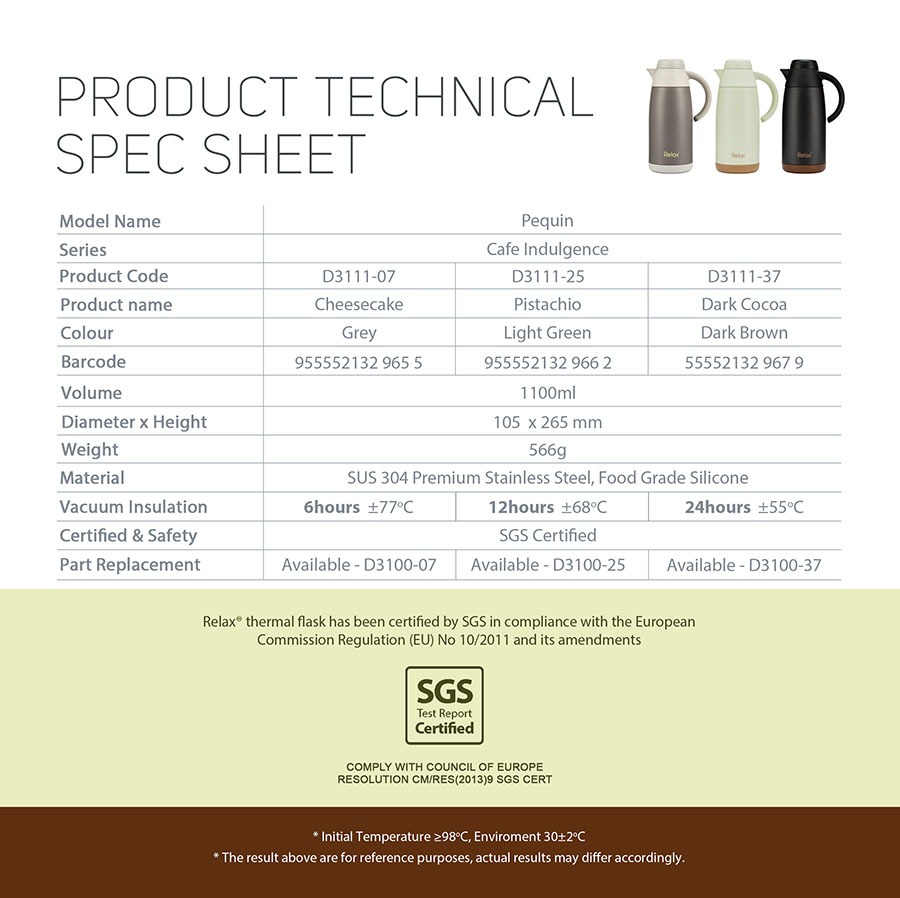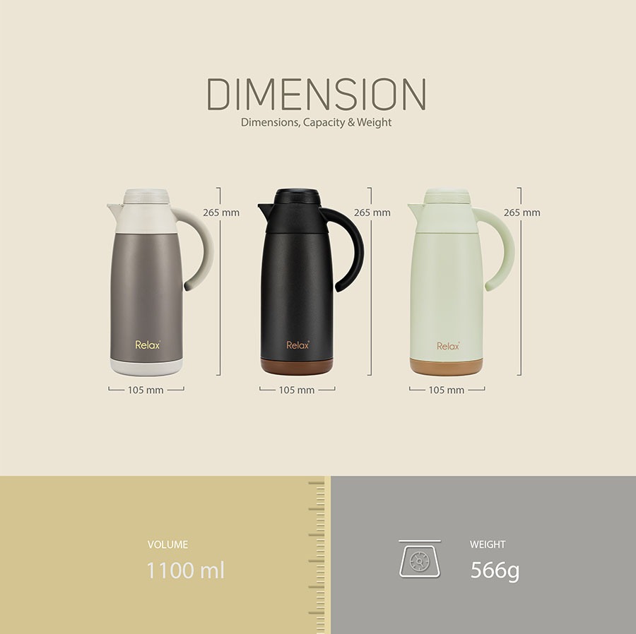 RELAX® 1100ml PEQUIN Stainless Steel THERMAL CARAFE