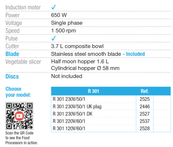 – Cutter to chop, emulsify, knead, grind and prepare sauces.