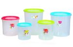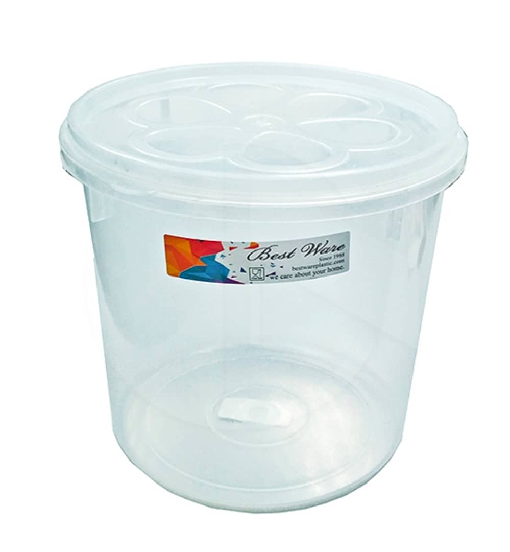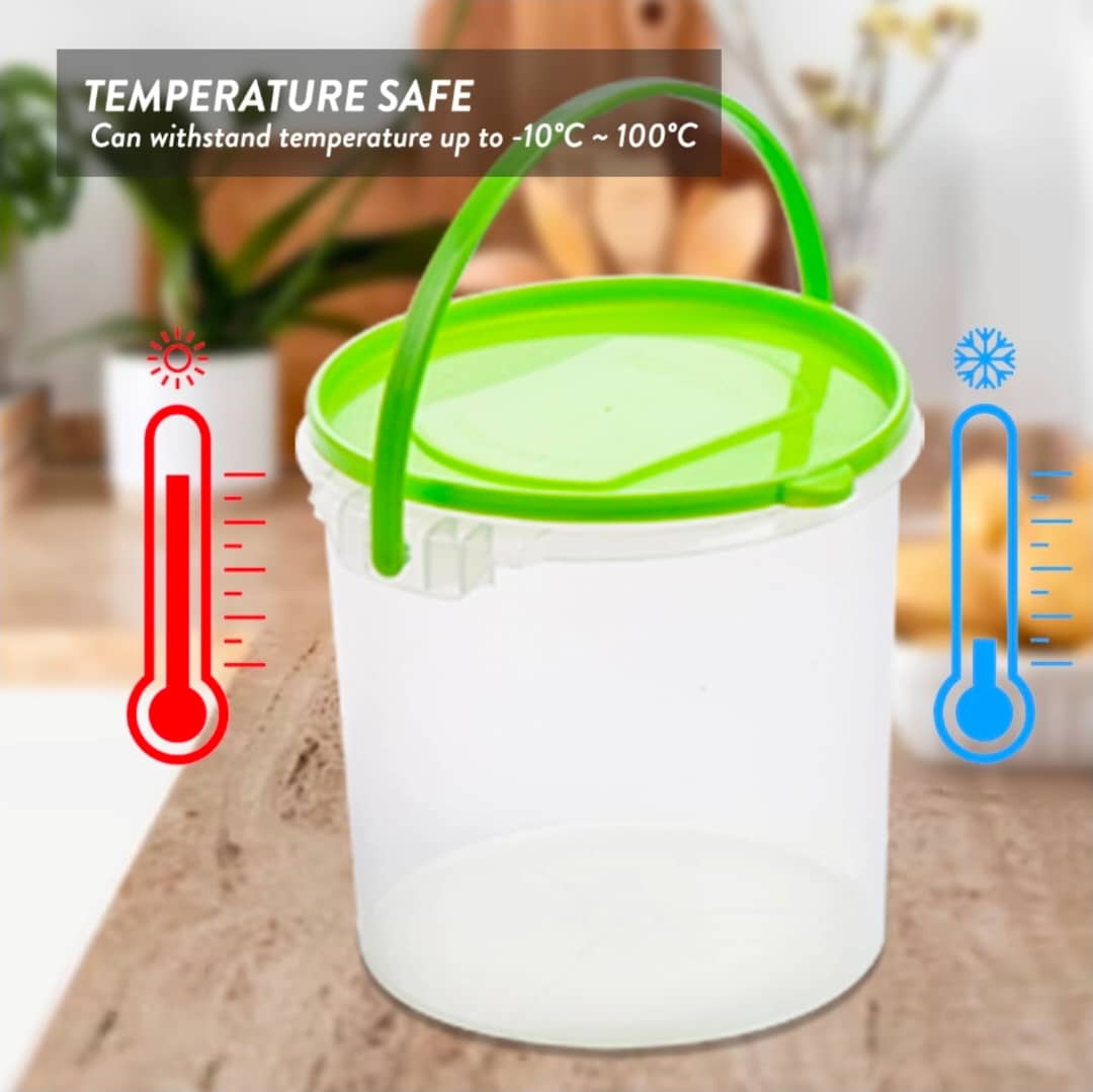 High-quality plastic round containers designed for foodstuff storage. These canisters feature a secure, easy-to-open lid and clear body for quick identification of contents; perfect for storing grains, pasta, snacks, sauce or even leftovers. It features a clear, BPA-free, food-safe material plastic body, ensuring the safety and freshness of your stored items. Compact and stackable, this container is an essential addition to any kitchen for efficient organization and storage.