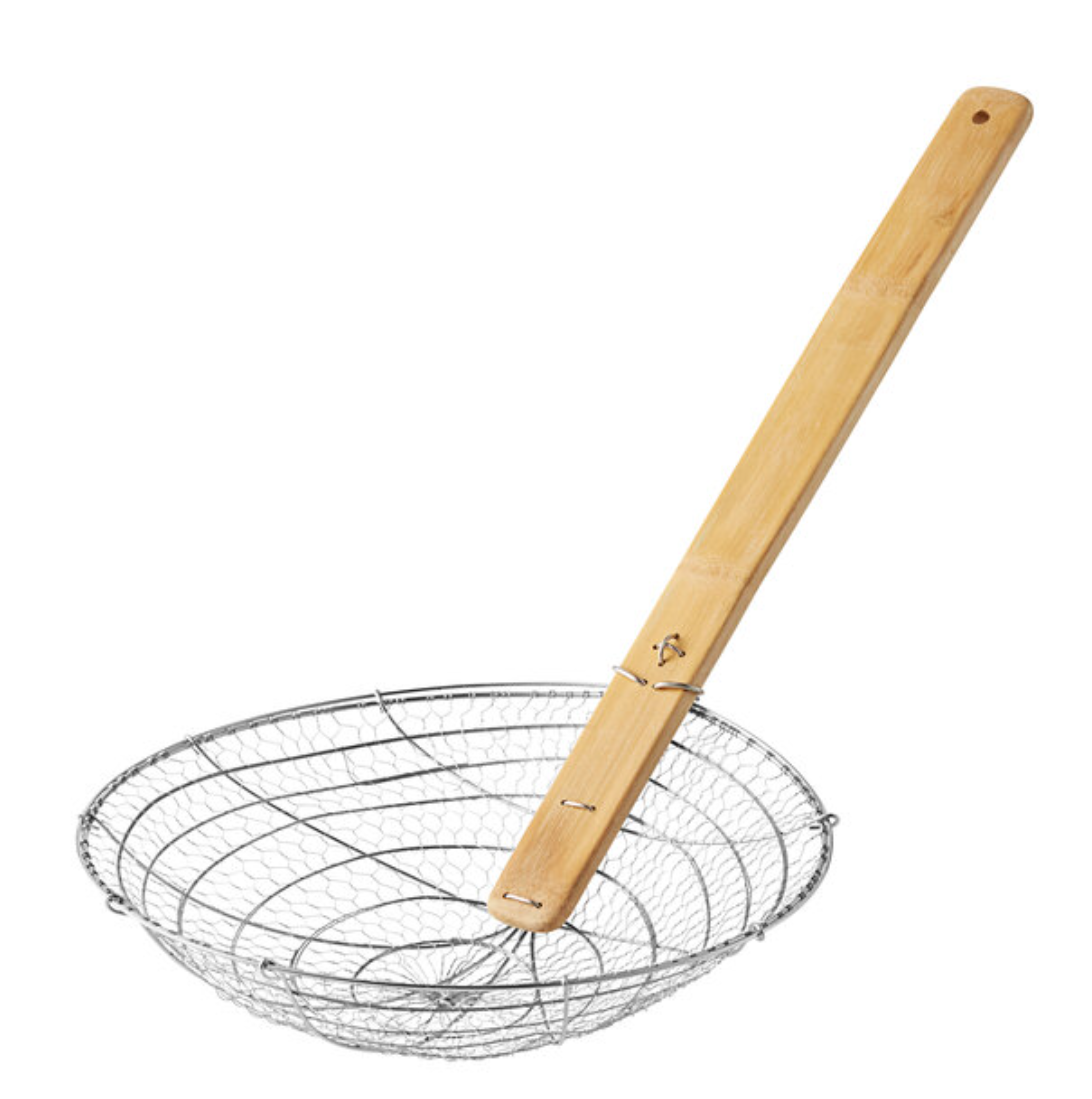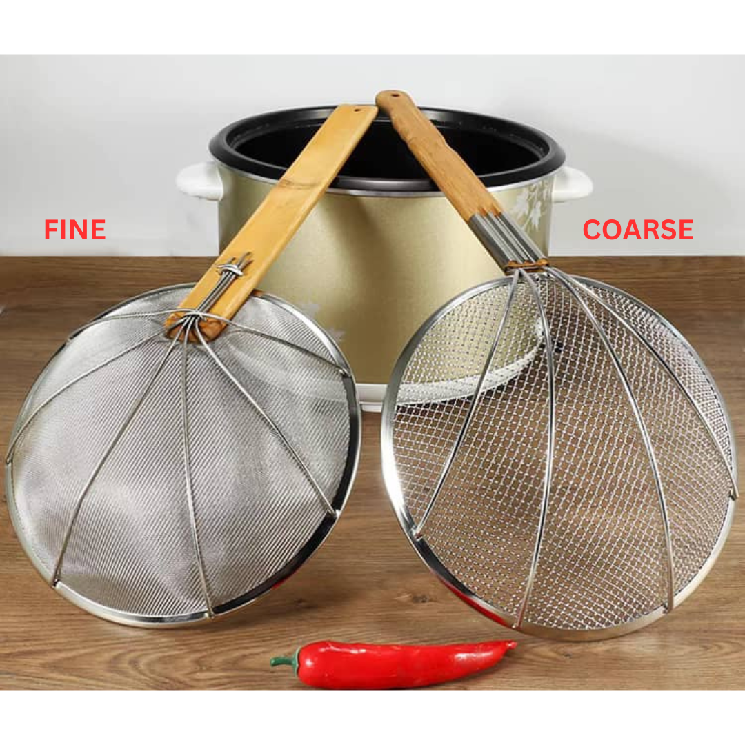 Featuring a sturdy, eco-friendly bamboo handle, this asian skimmer provides a comfortable and heat-resistant grip, ensuring safe and easy handling during use. The strainer comes with a fine mesh option and a coarse mesh option, allowing you to choose the right level of filtration for your needs. The fine mesh is perfect for skimming delicate soups, removing foam, or straining small particles, while the coarse mesh is ideal for lifting fried foods, draining pasta, or retrieving larger ingredients from boiling water or hot oil.