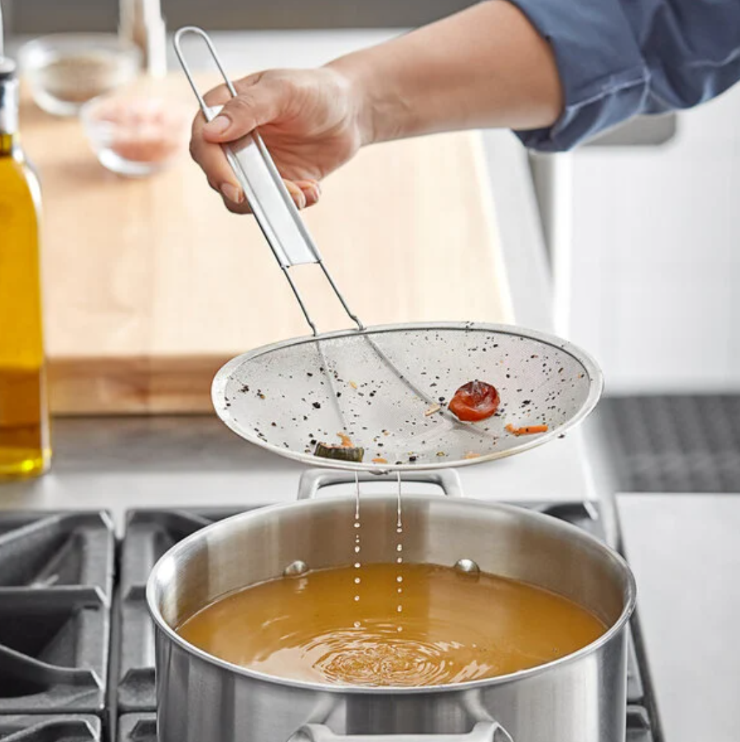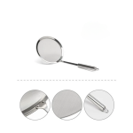 Efficiently straining and sieving liquids, such as broths, soups, and sauces, to remove unwanted particles and solids. Crafted with fine, durable stainless steel mesh, it ensures that only the smoothest liquids pass through while effectively catching larger ingredients and impurities.