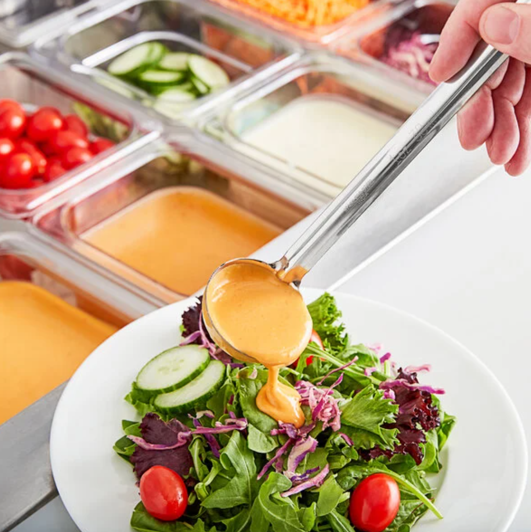 Use it to scoop up your signature salad dressings, hearty side dishes, and award-winning sauces. After use, the one-piece design ensures that there are no crevices between welded pieces, making it incredibly easy to clean.