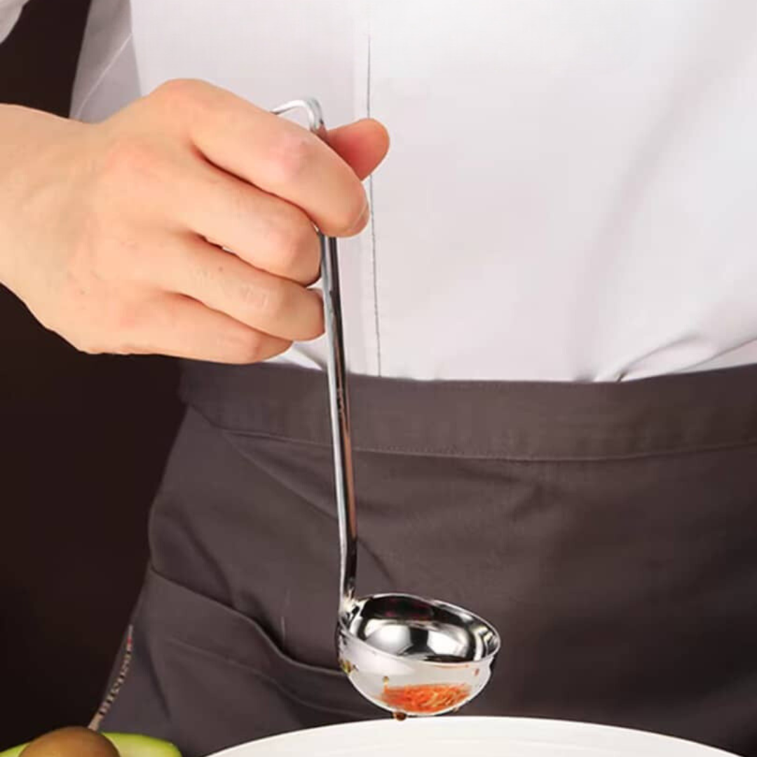 This stainless steel measuring ladle is a versatile kitchen tool designed for precise portioning and serving of soups, sauces, and gravies. Crafted from durable, food-grade stainless steel, this ladle ensures long-lasting performance and resistance to rust and corrosion.