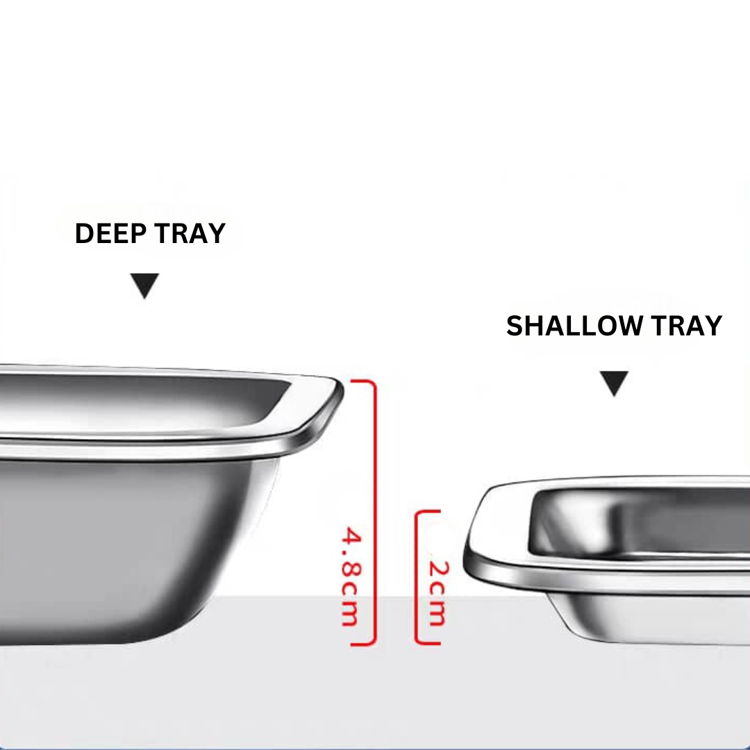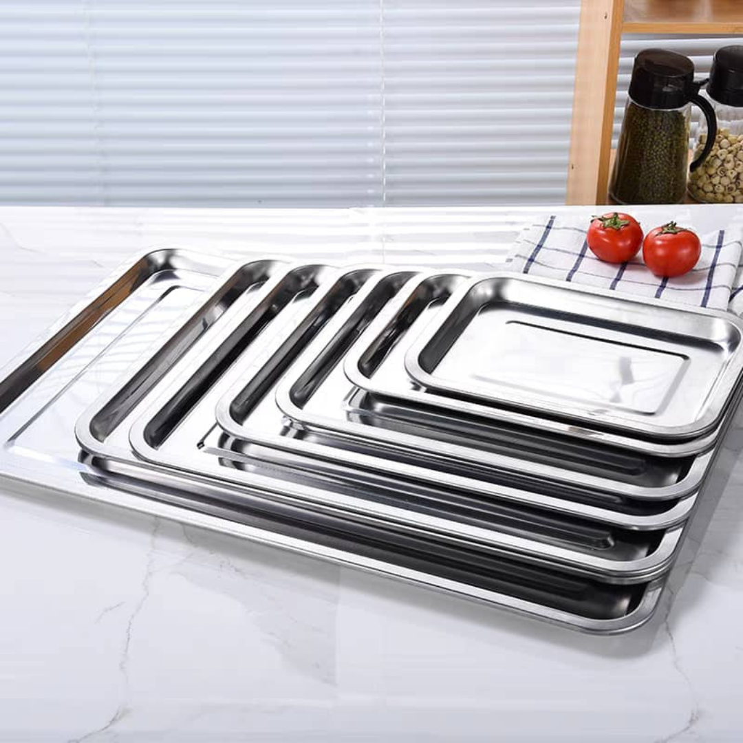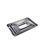 These trays come in multiple sizes to suit various needs, and each size comes with shallow or deep option. Ideal for baking, roasting, or serving food.
