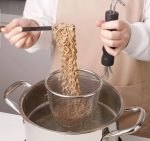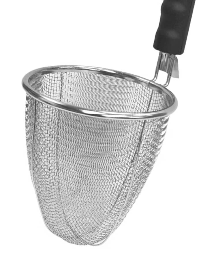 This Japanese noodle strainer has fine woven mesh allows for thorough straining, making it ideal for noodles, pasta, and even vegetables. The BLACK ABS handle is an improved version to replace wooden handle (which is banned by JKM and other health regulations). It provides a comfortable grip and stays cool to the touch, protecting your hands from heat. Additionally, it features a convenient hook design that allows it to rest securely on the edge of pots, freeing up your hands for other tasks.