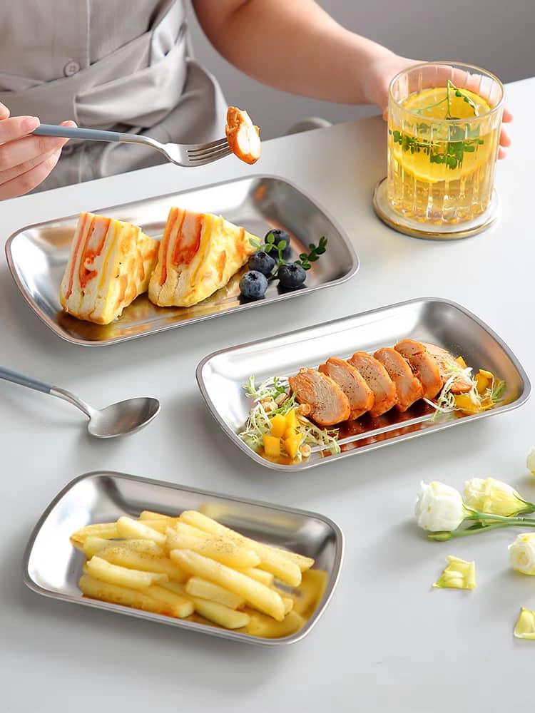 Made from high-quality SUS304 stainless steel, featuring a sleek, polished surface that is easy to clean and resistant to stains or rust. Its compact and modern design makes it ideal for serving fruits, snacks, or appetizers, adding a touch of sophistication to any table setting. A versatile dish perfect for home, catering events, or even outdoor picnics.