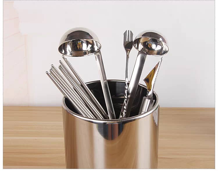 This stainless steel cutlery holder is a practical addition to any kitchen or dining setup, perfect for organizing utensils, chopsticks, and kitchen tools.