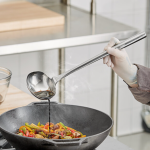 The wok ladle features a deep, rounded bowl ideal for scooping, stirring, and serving soups, sauces, and stir-fries, while the wok spatula’s flat, angled blade is perfect for flipping, turning, and tossing ingredients with precision. Both tools have long, ergonomic handles that provide a comfortable grip and keep your hands safely away from the heat. Whether you’re preparing a quick stir-fry, frying rice, or sautéing vegetables, this set is indispensable for any home cook or professional chef looking to enhance their Asian cooking techniques. Easy to clean and maintain, these utensils are a must-have for anyone who loves cooking with a wok.