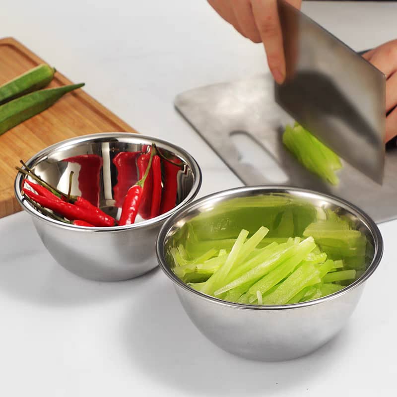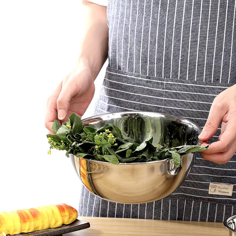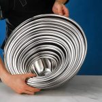 The conical design of this stainless steel bowl allows for mess-free mixing, whisking, and tossing of ingredients, making it perfect for preparing large batches of dough, salads, or batters. Whether you’re baking, marinating, or simply serving, these bowls provide ample space and are stackable for easy storage.