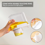 This airtight container is designed with a double silicone ring to ensure maximum freshness and secure storage for your food. The advanced sealing technology keeps air out, preserving the flavor and quality of your ingredients, whether it’s oil, grains, or other pantry staples. Its transparent body lets you easily see the contents, while the built-in measurement feature provides added convenience for precision in cooking or baking. The container’s ergonomic design includes a secure grip handle for easy handling, making it a perfect choice for organized, mess-free storage in any kitchen.