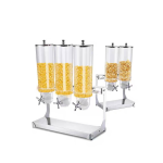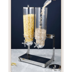 Made from durable polycarbonate (PC) and paired with a stainless-steel base and lid, this dispenser combines functionality with elegance — ideal for hotels, buffets, cafés, or home kitchens. The rotary control knob ensures smooth and controlled dispensing, minimizing mess and keeping your food fresh.