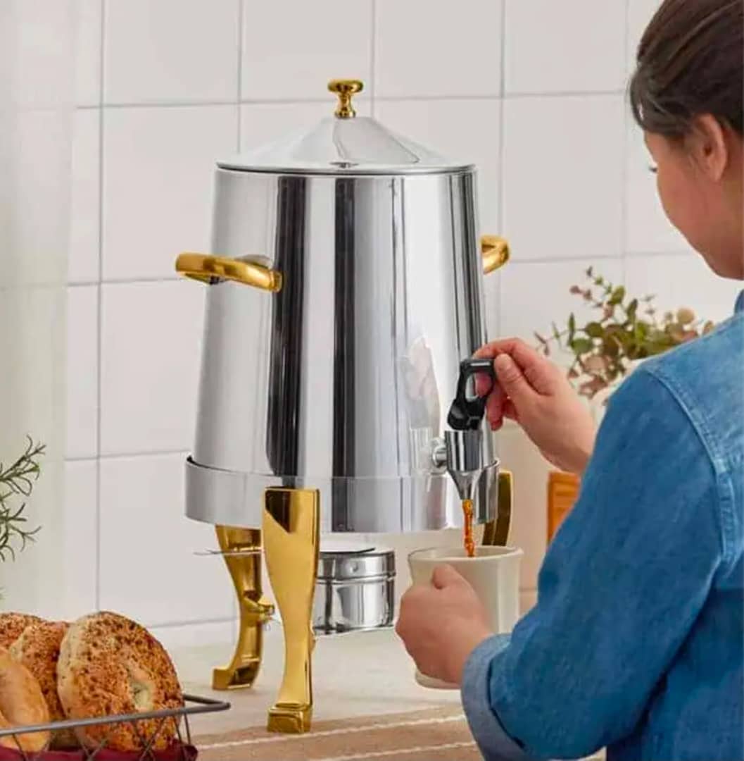 This stainless steel coffee urn is a durable and reliable beverage dispenser, perfect for keeping drinks hot or cold at events or gatherings. Made from high-quality stainless steel, it retains heat well and keeps cold drinks cool for longer. The rust-resistant spigot ensures smooth, drip-free pouring, while the sturdy square handles make it easy to lift and move. With its sleek design and practical features, this coffee urn is a great choice for serving beverages at any occasion.